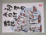 5年生の廊下に、冬を題材に俳句をつくり、絵手紙風に表現した作品が展示されています。