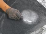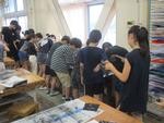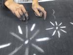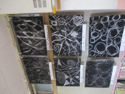 5年生が図工の学習で「消してかく」に取り組んでいます。画用紙を黒のコンテで塗り込んで、その用紙を消しゴムで消して線を浮かび上がらせます。