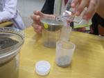 条件を一つだけ変えて(粒の大きさ)、あとは同じ条件に合わせて、丁寧に実験をしていきます。(比較実験の基礎を学んでいます。)