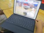 タブレットを使って、しみこむ様子を記録したり、しみこむ時間を計ったり。また、6つのグループの記録も、タブレット上で共有しました。