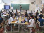 「雨水のゆくえと地面のようす」、これは4年生の理科の学習です。この日は、土や砂の粒の大きさによる水のしみこみ方を調べていました。砂場の砂、校庭の砂、畑の土、どれが一番早く水がしみこむでしょう。
