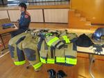 また、消防団の方からは、消防士とどのように力を合わせて現場で働いているか、わかりやすくお話がありました。消防士とは違う防火服も見せてくださいました。