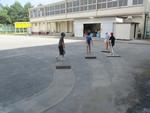掃除の時間に、校庭掃除担当の4年生が、運動会に向けて、校庭の整備を手伝ってくれています。