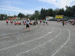 授業中のリレーの練習では、走るメンバーも真剣そのものですが、応援する側も大盛り上がりです。