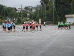 ↑チームごとに作戦を立てています。 各チームとも、勝ちを目指して精度の高いバトンパスに取り組んでいます。