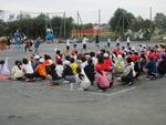 10月23日に校庭で、運動会の全体練習を行いました。この日は、応援と平戸体操が中心でした。