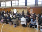 子どもたちが健康診断中、保護者の方には体育館でお待ちいただきました。子どもたちは10人のグループを作って、教員引率で健康診断を行いました。