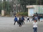 まだ給食開始前なので休み時間は短いのですが、それでも元気に校庭に飛び出し、おにごっこやドッジボールをして友だちと遊ぶ姿が見られました。