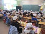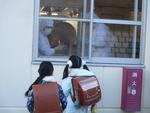 1月9日から、待ちに待っていた給食が始まりました。1月9日の朝一番で、子どもたちが給食室の窓をのぞいていました。