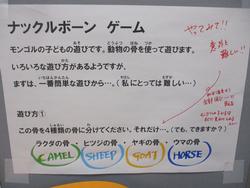 遊び方はいろいろあるようなのですが、まずは、動物の骨(ラクダ、ヒツジ、ヤギ、ウマ)を4つの種類に分けることから。モンゴルの子どもたちにとっては簡単なようですが、私には難しく…。子どもたちも取り組んでいました。