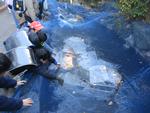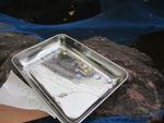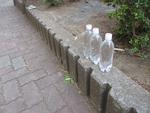 ここのところ連日、学校の池の周りに小さな容器が置かれています。