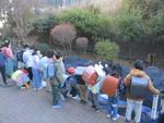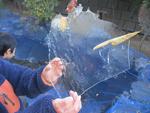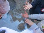 今日はとても冷え込んで、池の水も氷りました。登校してきた子どもたちも大喜び。