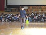 2月6日に、今年度最後の学校保健委員会が行われました。最初に、今全校で取り組んでいるなわとびへの意欲をさらに高めるために、体育館に集まりなわとびの試技を観ました。