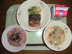 28日(火) 赤飯 ごま塩 牛乳 煮魚 磯香あえ 呉汁 ★10月27日は平沼小学校119年目の創立記念日でした。 今日は創立記念日をお祝いしてお赤飯の献立にしました。  |