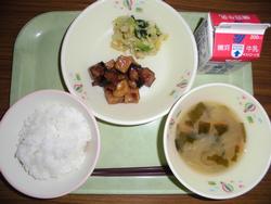 8日(水) はいがごはん 牛乳 タッカルビ はるさめスープ ★タッカルビの「タッ」は韓国語で「鶏肉」という意味で、「カルビ」は 「骨付き肉」という意味です。ごはんが食べやすい味つけでした。  |