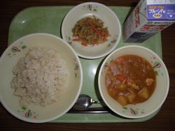 18日(火) はいがごはん プルーンはっこう乳 チキンカレー ごま酢あえ ★今日はチキンカレーです。 給食室で手作りしたルーでおいしいカレーになりました。 |