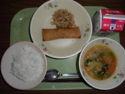 26日(水) ごはん 牛乳 春巻 中華あえ タンタンスープ ★11月の給食目標は「好ききらいなく食べよう」です。 黄・赤・緑のグループをバランスよく食べて元気に過ごしましょう。 |