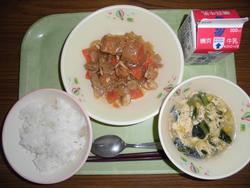 10日(水) ごはん 牛乳 生揚げと豚肉のみそ炒め 中華スープ ★生揚げは大豆から作られる食べ物です。 今日はしょうゆと砂糖で煮た生揚げを使って、生揚げと豚肉のみそ炒めにしました。 |