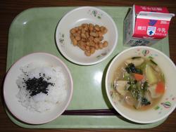 26日(月) ごはん 牛乳 すいとん ぶどう豆 ごま塩 ★学校給食は、明治22年に山形県の忠愛小学校ではじまりました。 今日ははじめての給食にちなんだ献立です。 |