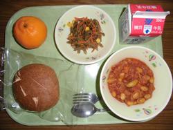 14日(水) はいがパン 牛乳 チリコンカーン ごぼうソテー ぽんかん ★ぽんかんはみかんより皮が厚めですが、手でむくことができます。 みかんの収穫が終わった後の12月から2月頃においしい柑橘類です。 |