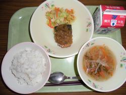 15日(木) 麦ごはん 牛乳 さばの甘酢あんかけ ゆで野菜 茎わかめスープ ★さばは10月から2月にかけて、あぶらがのっておいしくなります。 今日はさばの甘酢あんかけにしました。 |