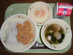 | 27日(火) こんぶごはん 牛乳 炒り鶏 かきたま汁 |