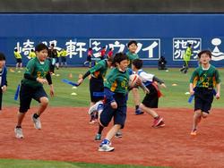 2月7日(土)横浜スタジアムで、「はまっ子スポーツウェーブ 第12回横浜市立小学校タグラグビー交流会」が行われました。この交流会をめざして、1月半ばから4・5・6年生の希望者で特別タグラグビークラブを作り、週3日間朝練に励みました。当日は、日下小から4年生6名、5年生17名、6年生9名が参加し、他校のチームと1チーム4試合ずつ試合を行いました。子どもたちは、横浜スタジアムの芝の上を力いっぱい走り回っていました。