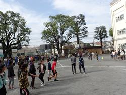 3日間設けられた、委員による遊び紹介デーでは、校庭で「あんたがたどこさ」、体育館で「リズムジャンプ」、第二グラウンドで「ドッジビー」を紹介し、低学年から高学年まで、自分のやってみたい遊びに参加して楽しんでいました。