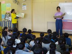 読書月間のしめくくりとして、劇団ぽかぽかの方々をお招きして、読み聞かせの会を開催しました。本校では、毎年の恒例になっており、日下っ子たちはみんな、劇団の方々の読み聞かせを楽しみにしています。