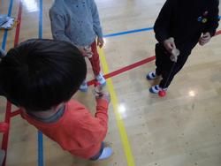 幼保小連携の一環として、交流会が本校にて行われました。幼保小とは、幼稚園、保育園、そして小学校の連携のことを指します。今日は、三つの保育園から、この四月に小学生となる年長園児のみなさんが来校し、1年生と交流しました。校舎案内や昔遊びを楽しみました。