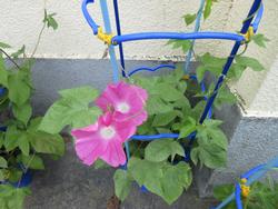 1年生が育てている朝顔が咲き始めました。つるもどんどん伸びています。