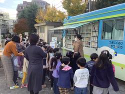市立中央図書館より移動図書館はまかぜ号が本校に来ました。1年生がはまかぜ号の説明を受けたり、「すこーし こわい むかしばなし」のブックトークを聞いたりしました。様々な本との出会いにますます読書が好きになった子どもたちです。