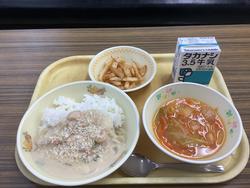 今年最後の給食には、横浜で生まれた料理のシーフードドリアが出ました。今年は、給食委員会の児童が先生たちの出身地料理を調べ、それを給食のメニューに生かす企画を行なっています。今回は、横浜市出身の職員の紹介です。