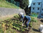 今日の午前中、畑ボランティアの方が聖護院大根の土寄せをしてくださいました。