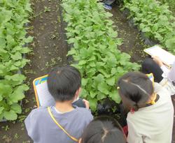 菜園で蒔いた種の芽が出てきました。カブとニンジンの芽は葉の形が違うことに気付き、観察カードに詳しく書き表しました。ぐんぐん成長する様子を見て、収穫するのが一層楽しみになったようです。