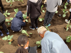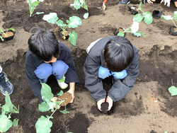 5年生は、菜園に行き冬野菜のブロッコリーの苗植えをしました。菜園隊の方に、苗の植え方のコツを教えてもらい、友だちと協力して植えることができました。植えたあとには、「強い風になっても支柱はなくて平気ですか?」「水はどのくらいのペースであげるとよいですか?」と菜園隊の方に質問する姿がありました。苗の様子をじっくり見ながら、ブロッコリーが大きく生長できるよう、お世話を頑張っていきたいと思います。