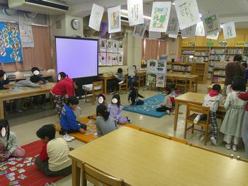 にじのはな(1年生)が、教室を案内し、その後は図書館に移動してサンサン32(3年生)がつくった、ほんみなカルタをやってもらいました。カルタを通して、本牧南小学校やふるさと本牧(地域)のことを知ってもらうことができました。