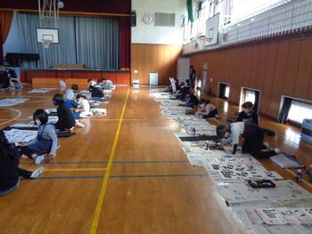 3年生と4年生が体育館で書き初めを行いました。3年生は「友だち」、4年生は「明るい心」を、気持ちを込めて書きました。