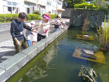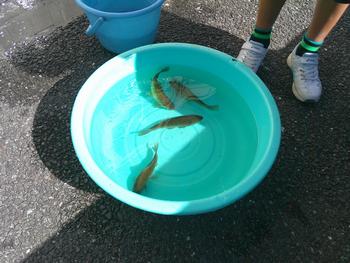 運動会の前から、校庭の横にある池で魚を釣ろうとチャレンジしていたチャ畑(4・5くみ)の子たち