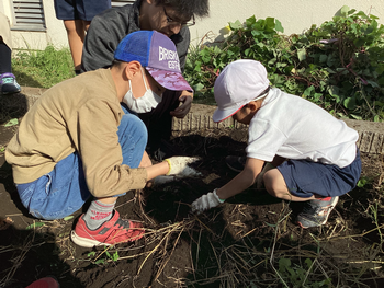 チャ畑(4・5くみ)が、サツマイモを収穫しました。