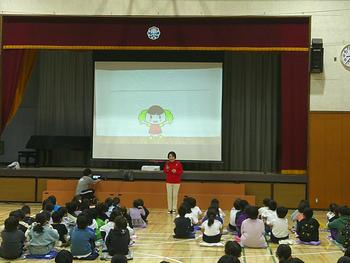 今日の朝会は、毎年恒例となりました。栄養士の先生からのお話です。