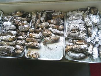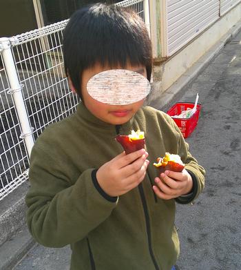 チャ畑(4・5くみ)が、自分たちの畑で育てて収穫した本牧南産のさつまいも