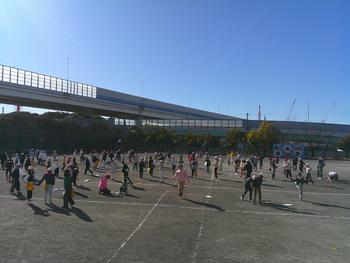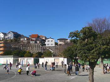 快晴の空の下、子どもたちは元気に縄跳びをしています。