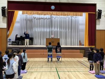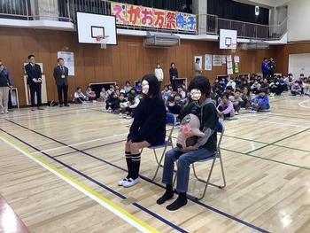 全校で校歌を歌いました。