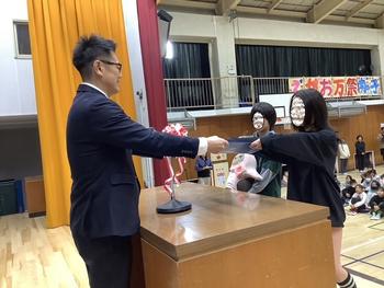 図書委員長と副委員長が代表でチョコと一緒に入場をしました。