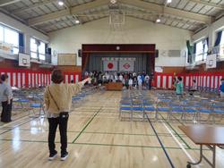 新6年生の登校し、入学式準備をしています。