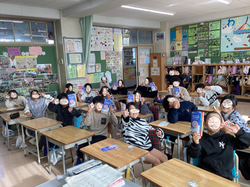 にじのはな(1年生)が、教室を案内し、その後は図書館に移動してサンサン32(3年生)がつくった、ほんみなカルタをやってもらいました。カルタを通して、本牧南小学校やふるさと本牧(地域)のことを知ってもらうことができました。
