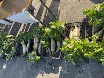 今日の朝収穫したばかりの、無農薬の本牧南産大根とかぶです。