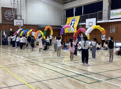 各学年の代表が持った色とりどりのアーチをくぐり、