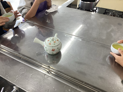 給食室で元気に挨拶をして、しっかり並んで運ぶことができる南っ子。